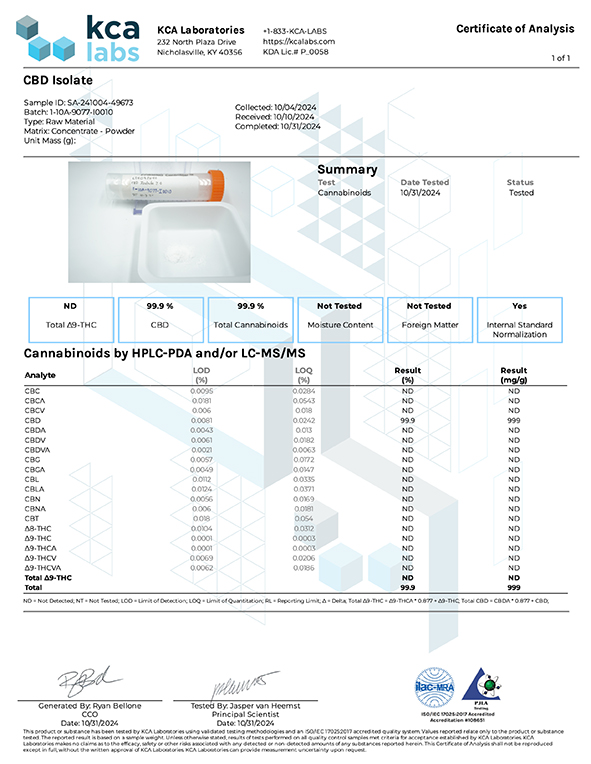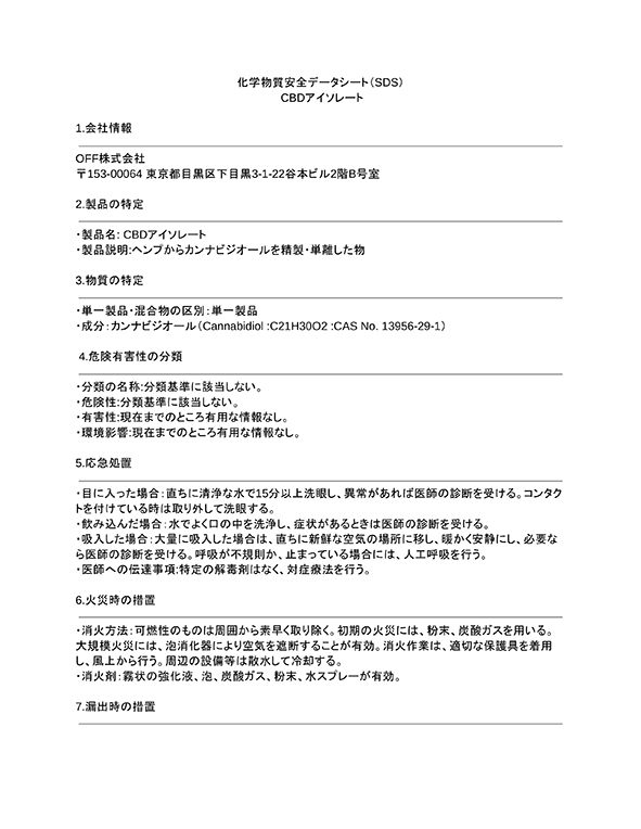 【原産国】アメリカ合衆国 【分析証明書】第三者機関による成分分析にてTHC 不検出を確認済み。 本製品はTHCを含みません(検出限界未満)。